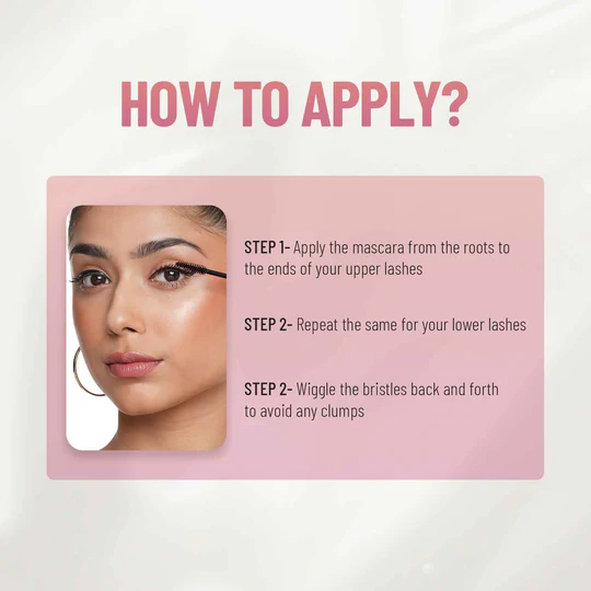 - Starting at the base of your top lashes, sweep the mascara wand through to the tips. Apply over the top of the lashes as well as under to create an extra-voluminous look.