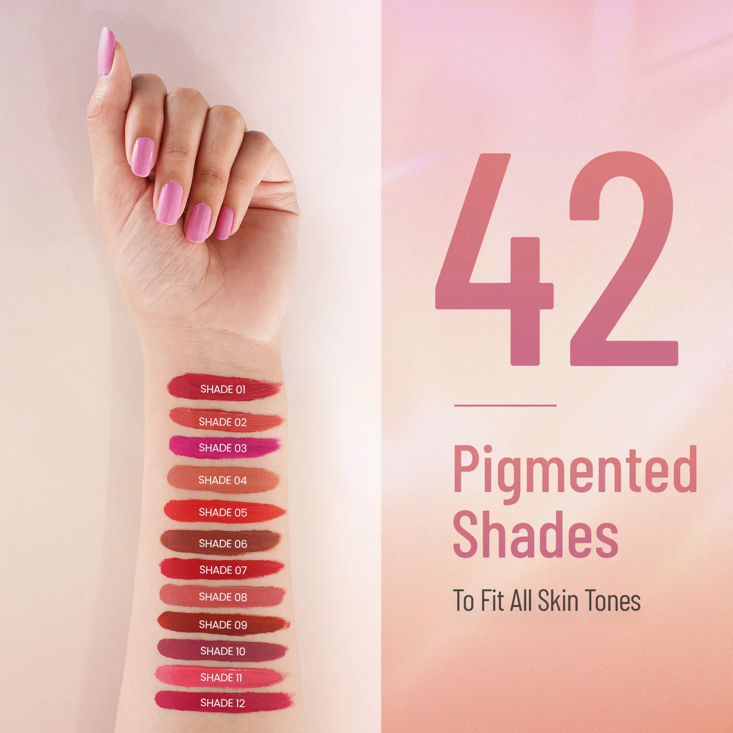 Colour | Berry, Dry Chill, Iconic Nude, Rich Red, Romantic Rose, Salmon |